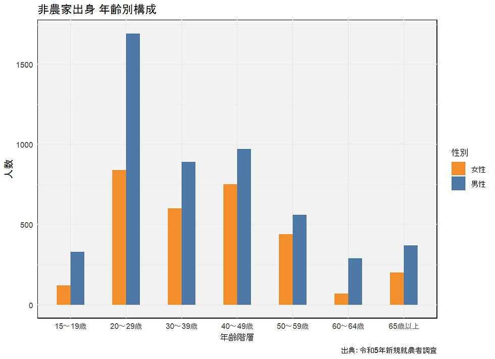 このことは、新規学卒就農が「若年層の入口」であることを明確に示している。特に20代が中心であり、学校卒業後すぐに農業へ入るルートは確実に存在している。